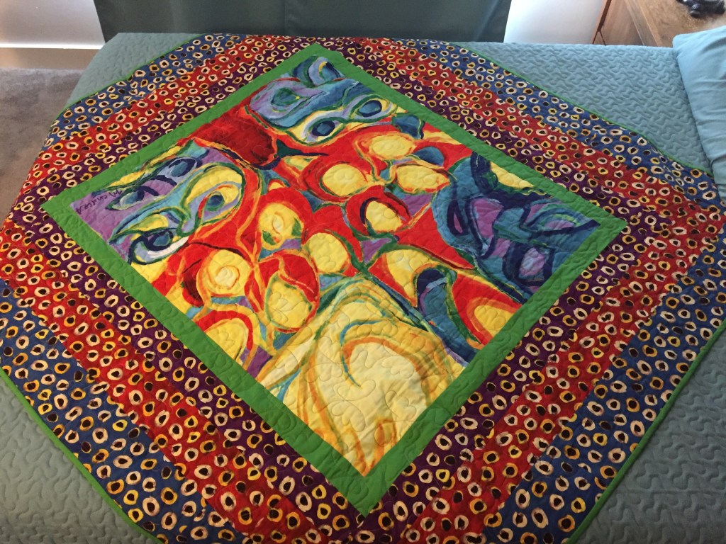 Irma sends a picture of the quilt her sister-in-law made: sending you a picture of the quilt that my sister-in-law gifted me with. It reminds me of Pentecost. It will remind me of my sermon and that the holy spirit is always with me.